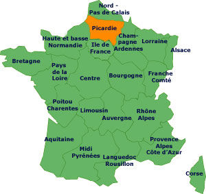 Carte: la Picardie par rapport à la France